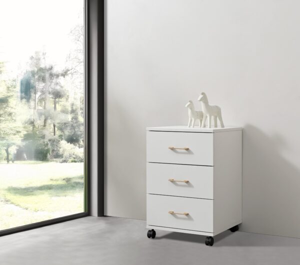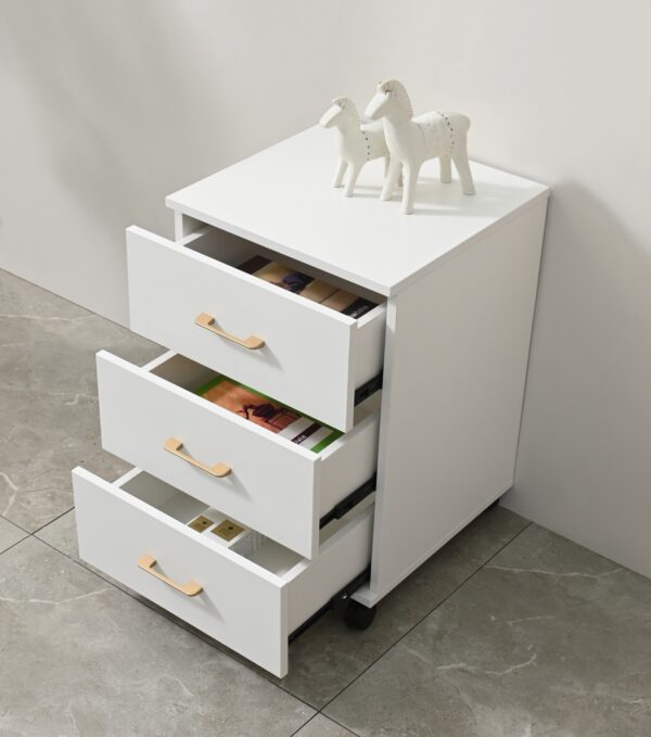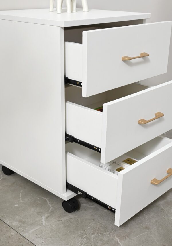 Gabinete móvil auxiliar ideal para espacios reducidos en baños o estudios.