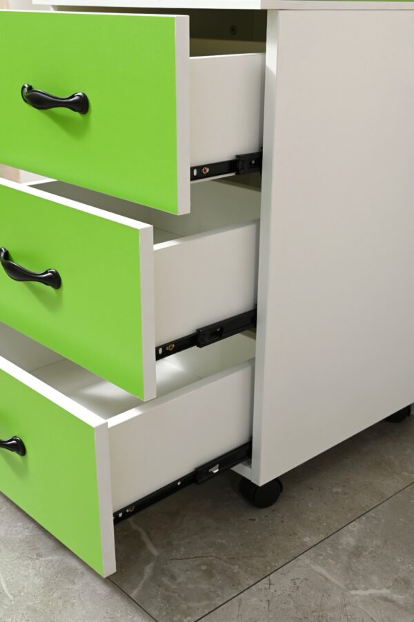 Mueble auxiliar con ruedas para uso flexible en interiores.