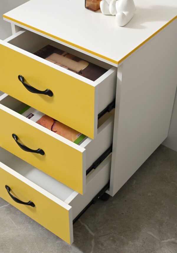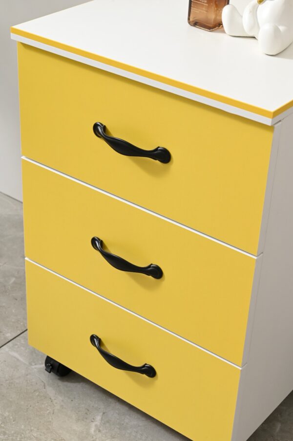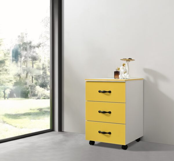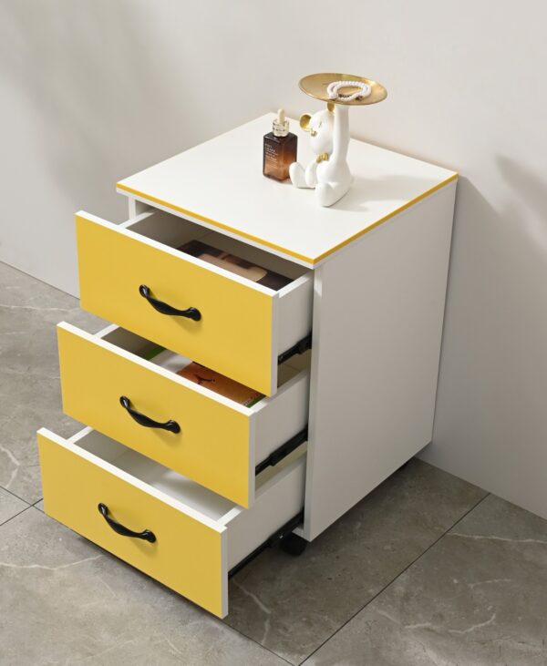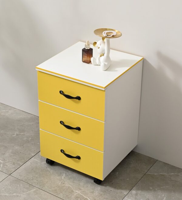 Mueble auxiliar con movilidad y diseño simple para múltiples usos.