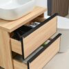 Mueble empotrable para baño con tiradores metálicos y diseño moderno.